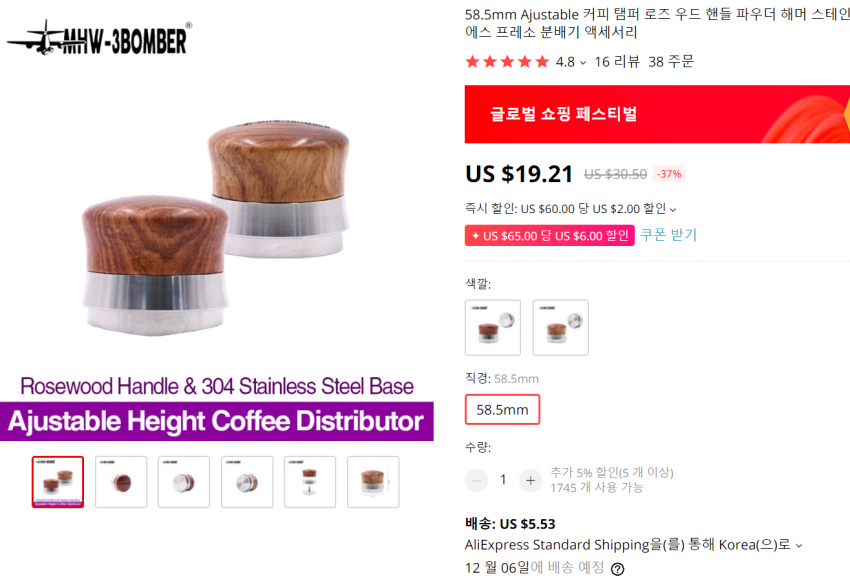 단점: VST 또는 IMS 릿지리스 계열의 26.5 이상 사이즈가 잘 안맞음 (포터필터 아랫쪽이 안쪽으로 모이는 디자인이라 제대로 안꼽힘)
