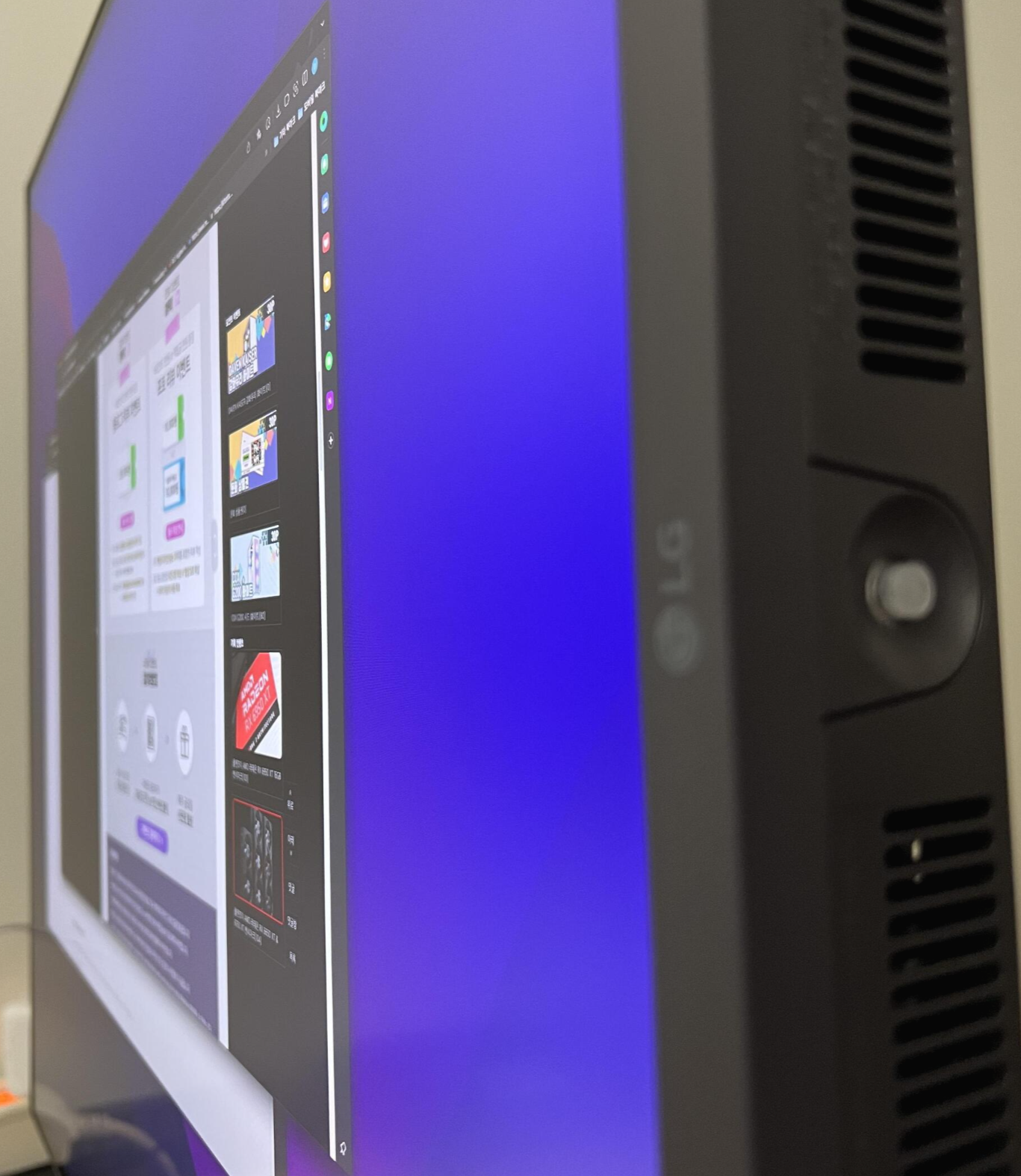 디자인은 깔끔하고 좋은데 기존에 보던 모니터들보다는 두꺼운 편입니다.